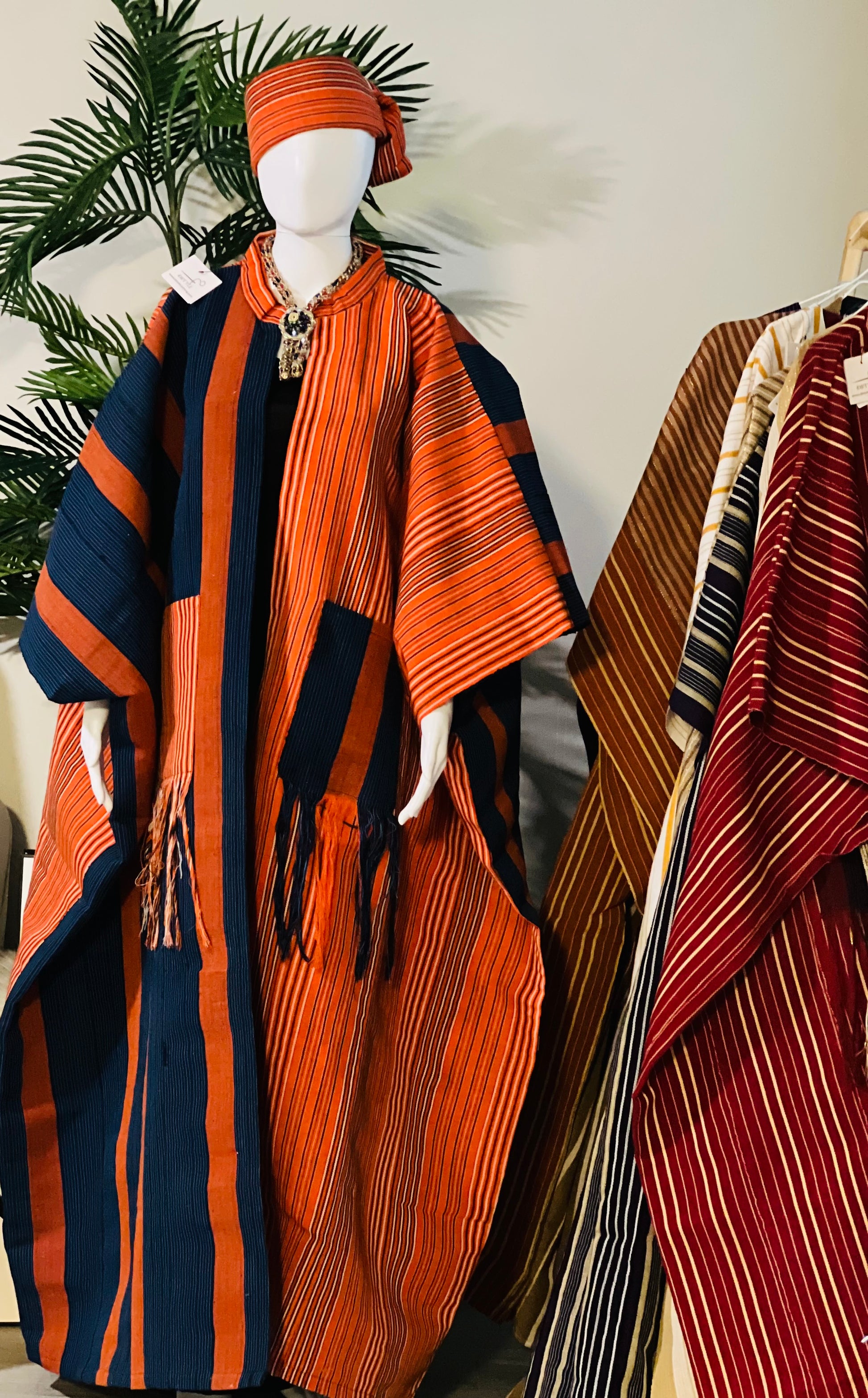 The Flame & Favor Kaftan captures the essence of divine boldness wrapped in royal restraint. Burnt orange reflects Esther’s inner fire—her willingness to rise in courage and confront fear for the sake of others. The deep onyx accents signify depth, spiritual discernment, and quiet strength. This is the garment for the woman who carries both the spark of purpose and the weight of divine favor—lit from within, steady in her calling.
