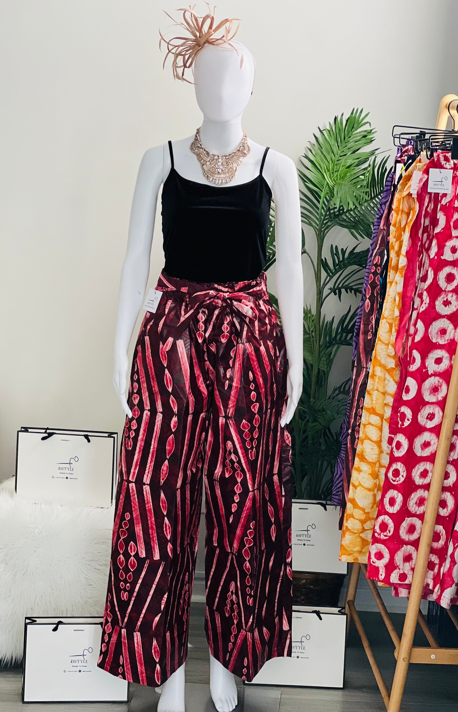 A color of conviction and courage, Crimson Red embodies Jael’s fearless spirit. These wide-leg palazzo pants command attention while offering ease and grace in movement. Hand-dyed in bold red hues, this piece is for the woman who knows when to rise, when to speak, and when to act.